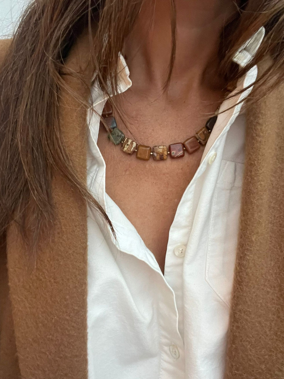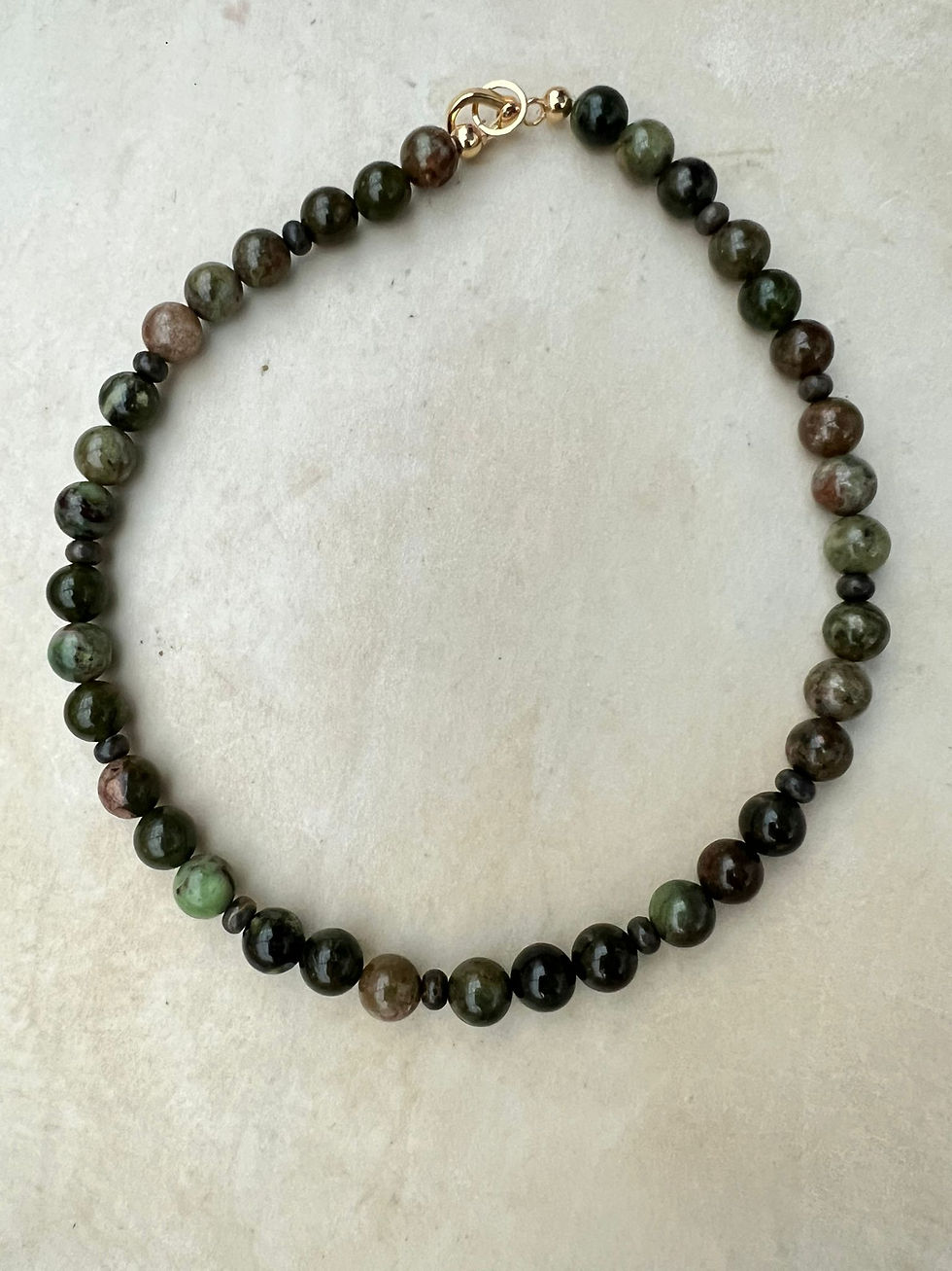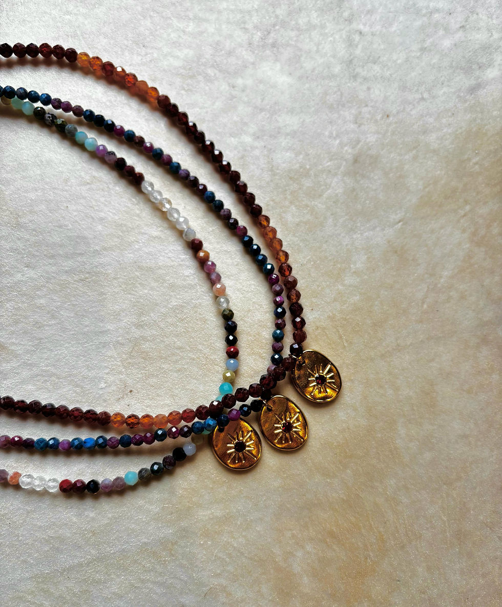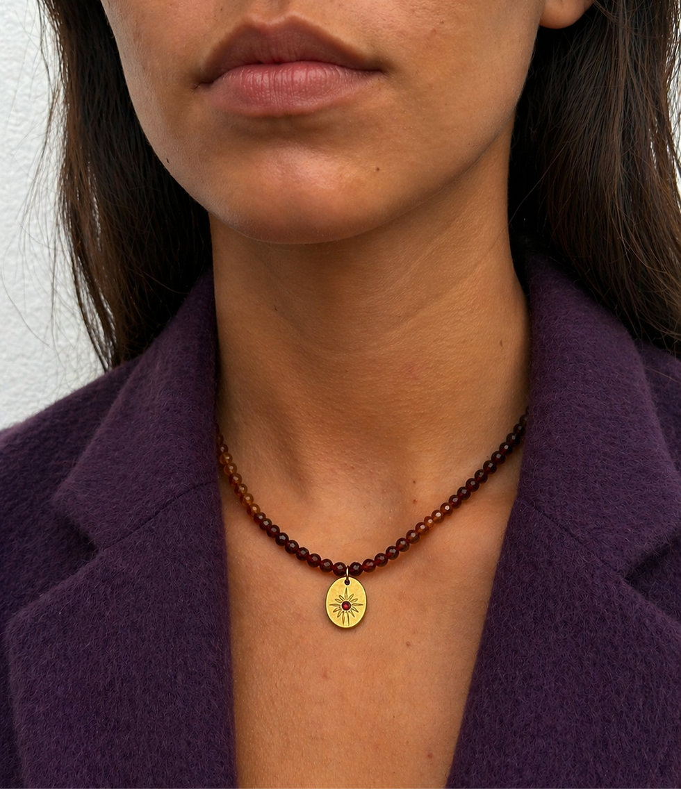Collar de cuentas esféricas en vidrio de acabado pulido, con brillo intenso y color vibrante. Un clásico versátil que suma fuerza y elegancia a cualquier look.